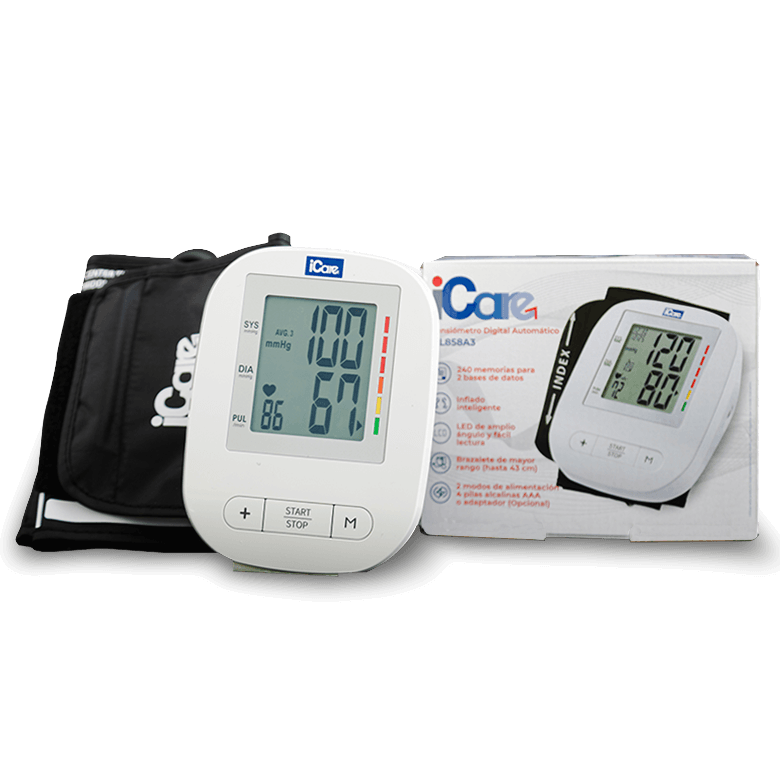 Registra de manera automática la presión arterial (sistólica y diastólica) y la frecuencia cardíaca, aplicando el método oscilométrico durante el inflado para mayor comodidad.